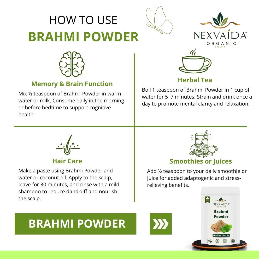 Nexvaida Brahmi Powder – Memory, Stress Relief & Hair Wellness